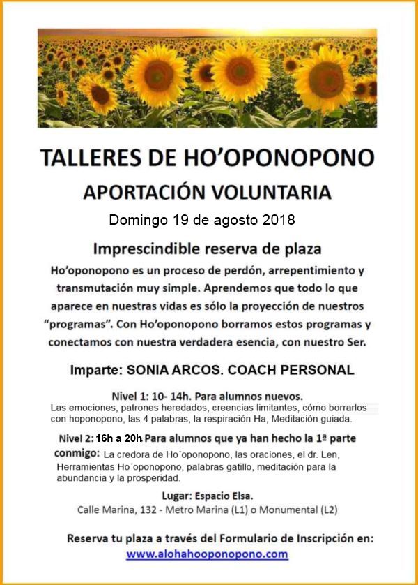 Ho´oponopono Nivel 1 y 2- Talleres impartidos por Sonia Arcos