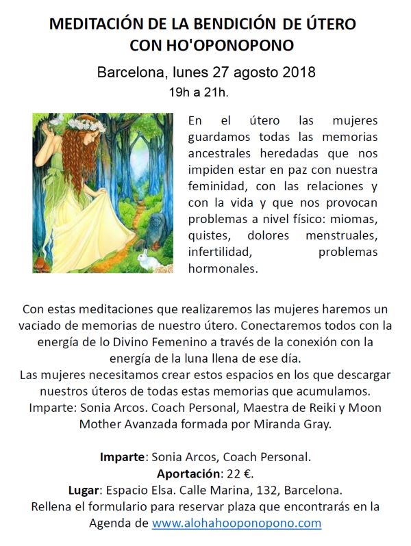 Meditación de la bendición de útero con Ho´oponopono- imparte Sonia Arcos