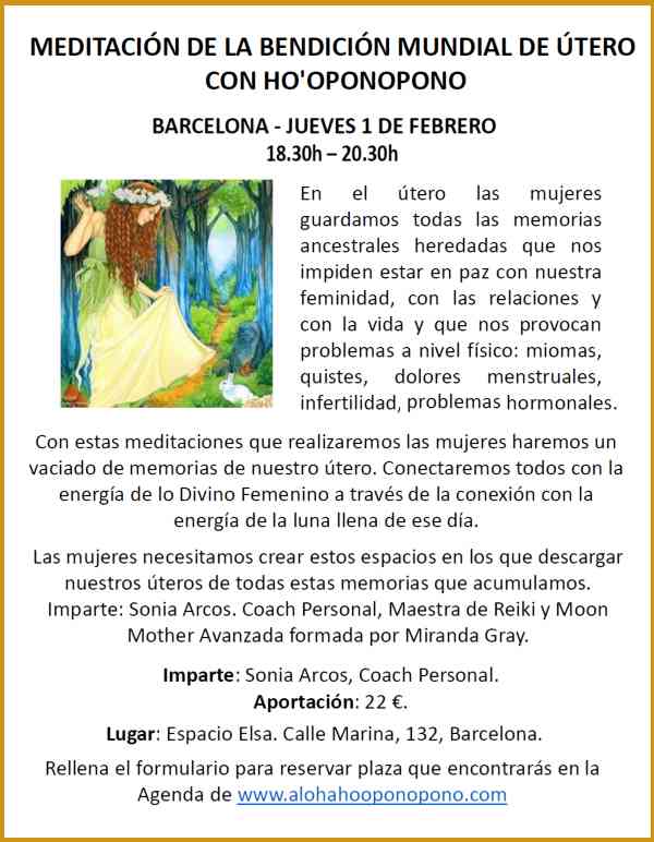 Meditación de la Bendición mundial de útero con Ho´oponopono- imparte Sonia Arcos