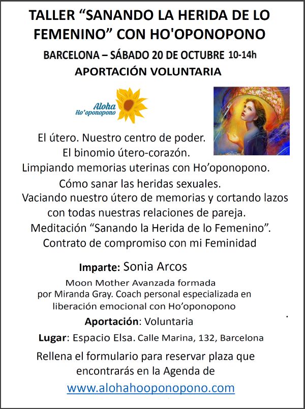 Taller Sanando la herida de lo femenino con Ho`oponopono- imparte Sonia Arcos-Aportación voluntaria