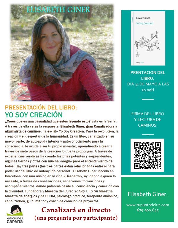 Elisabeth Giner, gran Canalizadora y alquimista de caminos, ha escrito Yo Soy Creación para la revolución, la creación y el despertar de la humanidad.